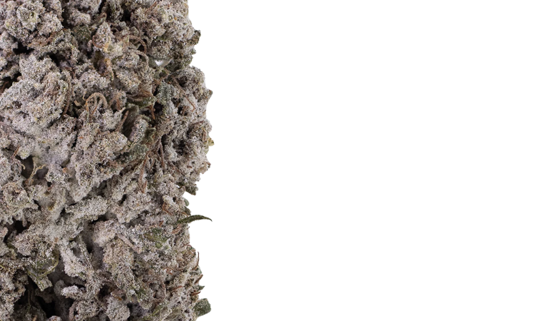 Cherry Pie is a dense, THCA-coated flower with an elongated yet compact structure and a striking silvery-purple hue. A generous layer of crystalline THCA creates a frosted, textured finish, while subtle amber pistils introduce contrast and depth to the overall appearance.