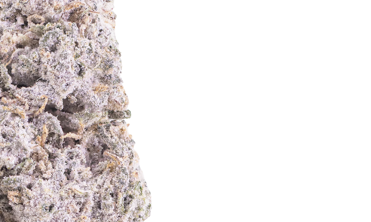 Durban Poison is a THCA-coated flower featuring an elongated, tapered structure and a distinctly frosted exterior. A fine crystalline THCA layer covers the surface, delivering a pale, powdery finish that gently softens the bud’s deep green tones and subtle purple accents.